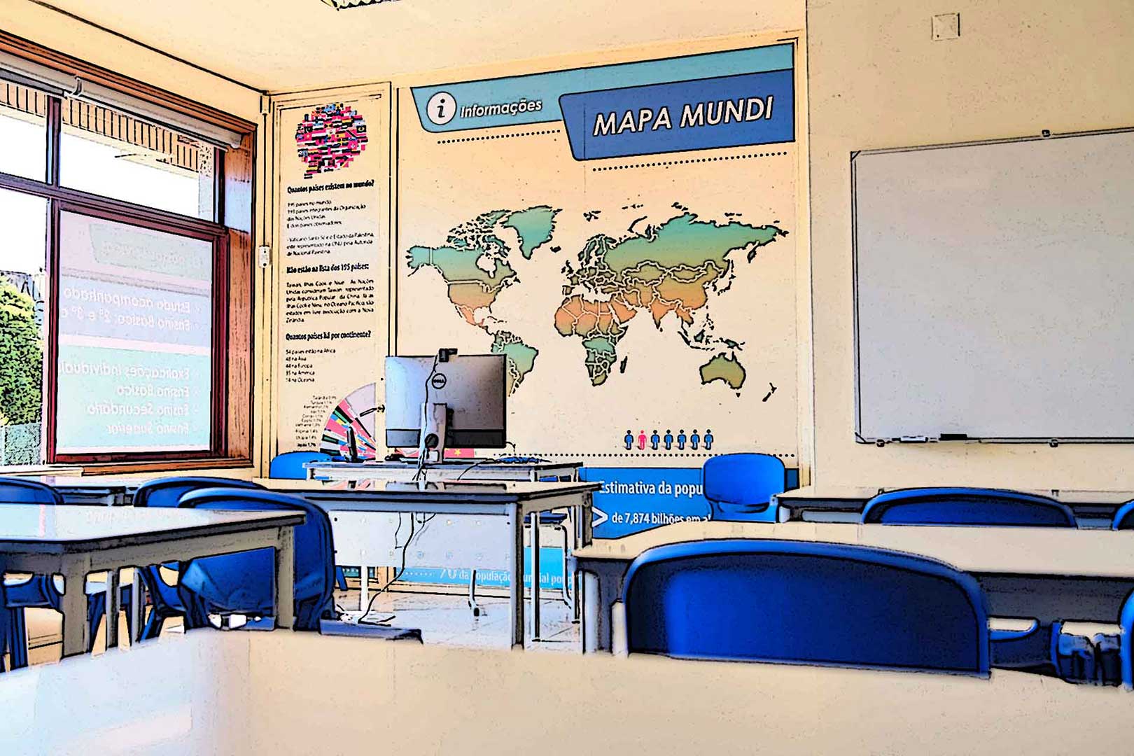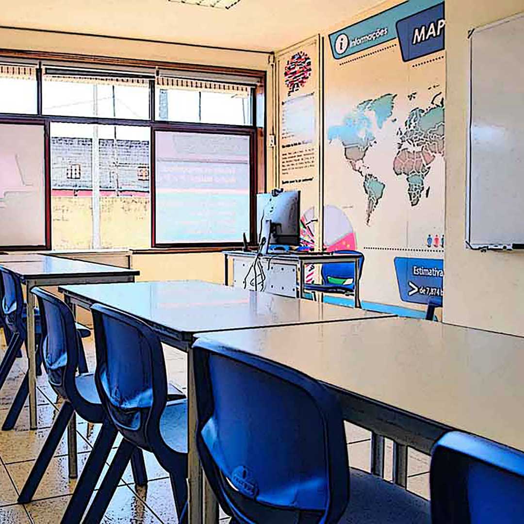 Todos os temas são desenvolvidos em frente a um monitor, ou dois, um para o aluno e outro para o professor 😁
